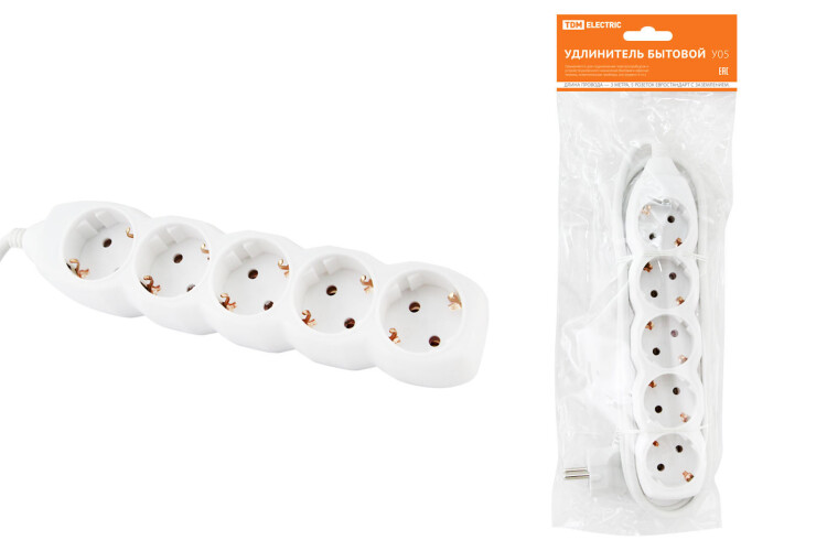 Удлинитель 5 гнезд с/з 3м 16А 250В (ПВС 3х1мм2) белый TDM (20шт)
