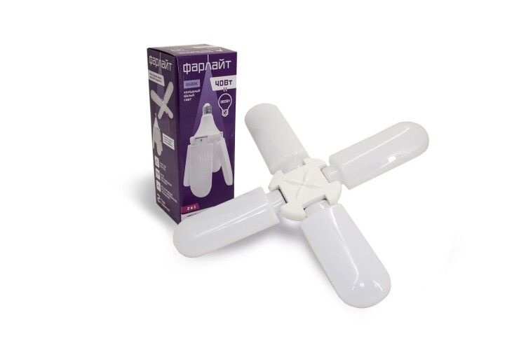 Лампа с четырьмя идеально подойдёт для офисных, складских и подвальных помещений, лофтов, а также освещения гаражей и придомовых территорий. Лампа излучает яркий холодный белый свет в 6500К, который делает пространство визуально свободнее, не искажает цвета предметов, повышает работоспособность.
