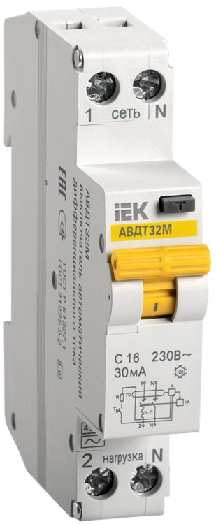 АВТ. ВЫКЛЮЧАТЕЛЬ ДИФ.ТОКА АВДТ 32М С16 30мА ИЭК