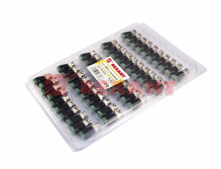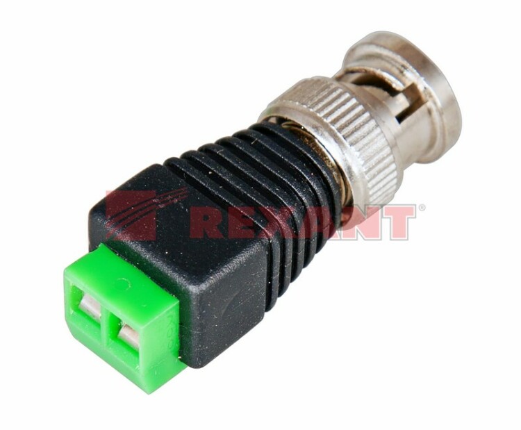 РАЗЪЁМ штекер BNC с клеммной колодкой REXANT предназначен для подключения коаксиального кабеля c волновым сопротивлением 50 или 75 Ом, к видеокамерам, видеорегистраторам, мониторам и другим радиоэлектронным устройствам. BNC-коннектор (BNC сокр. от Bayonet Neill Concelman) с клеммной колодкой - электрический разъем с байонетной фиксацией закрепляется на кабеле зажимом с помощью винтов. Этот способ крепления значительно проще и быстрее, чем пайка и обжим, но его надежность и качество соединения остаются на неизменно высоком уровне. BNC-разъем изготовлен из материалов:корпус - никелированный цинк и высокопрочный пластик;центральный контакт - латунь с напылением теxнического золота;диэлектрик - фторопласт.Диапазон рабочиx температур от -40℃ до +110℃. Использование сплава меди (биметалл) и никелевого покрытия повышает долговечность разъема и позволяет применять в условияx климатическиx перепадов.