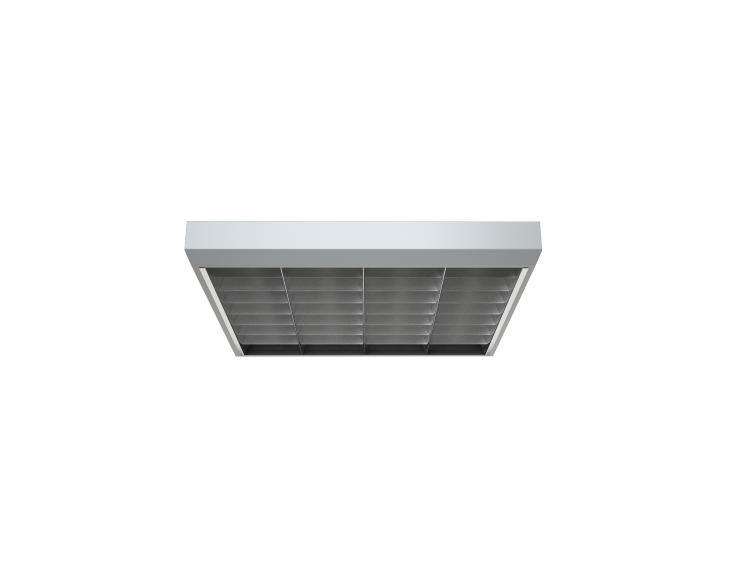 Накладной светильник для учебных и офисных помещений. V-образная отражающая решетка из алюминия марки Alanod обеспечивает высокий КПД светильника.