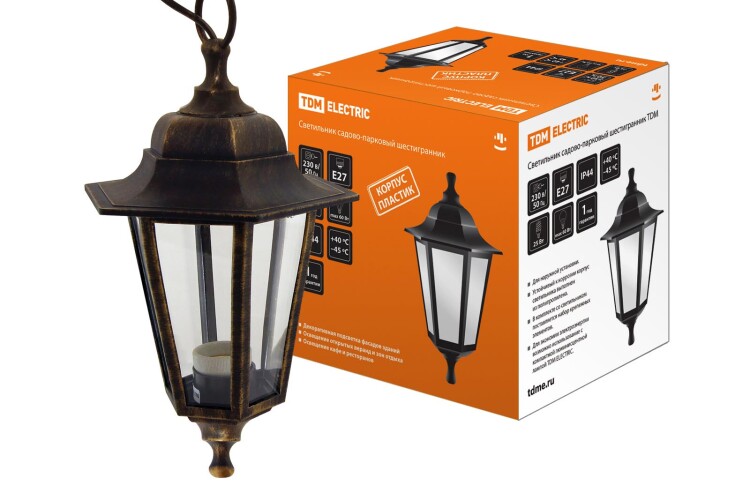 Светильник садово-парковый НСУ 06-60-001 шестигранник, подвес, пластик, бронза TDM