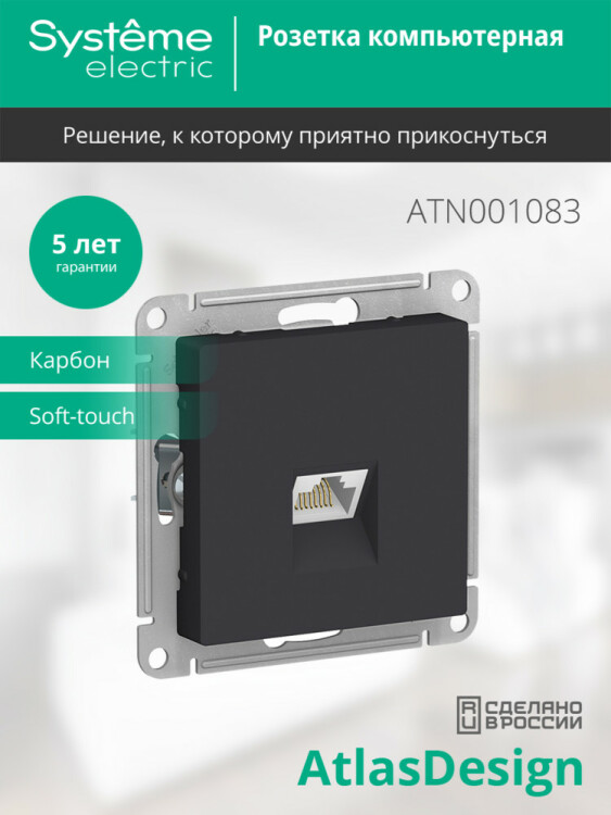 ATLASDESIGN Розетка RJ45 компьютерная карбон SYSTEME ELECTRIC