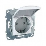 Розетка Schneider Electric UNICA (белый) с заземлением, со шторками, с крышкой предназначена для сетей до 250 В на ток до 16 А.