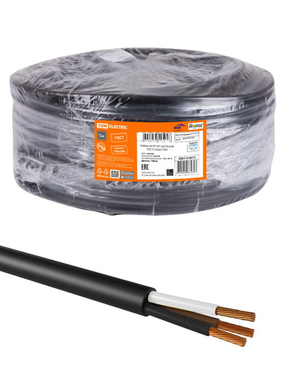 Кабель КГТП-ХЛ 3х0,75-0,66 ГОСТ (100м) TDM
