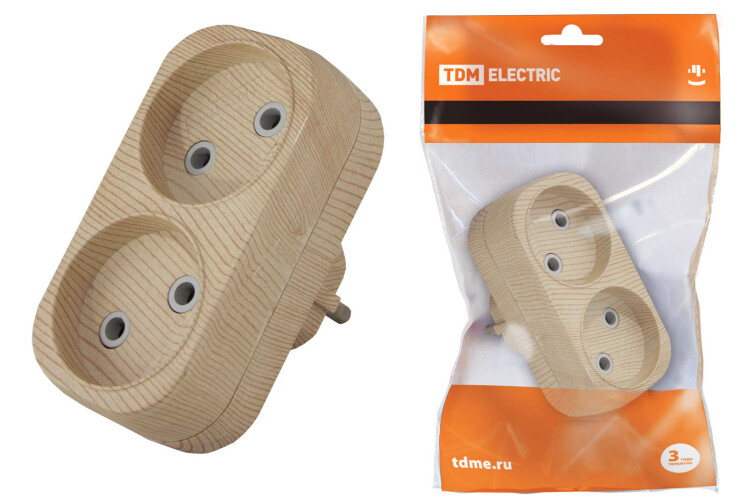 ЭКО Блок 2 гнезда б/з плоский 6А 250В сосна TDM (10/50шт)