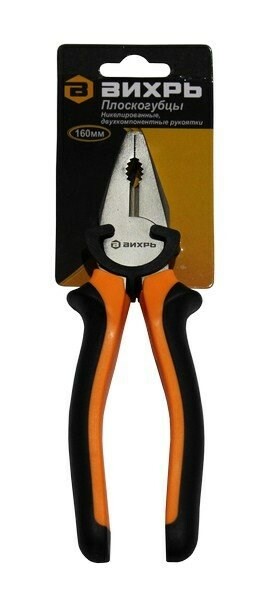 Пассатижи (плоскогубцы) , 160мм, никелированные , двухкомпонентные рукоятки 73/6/3/6, , Вихрь