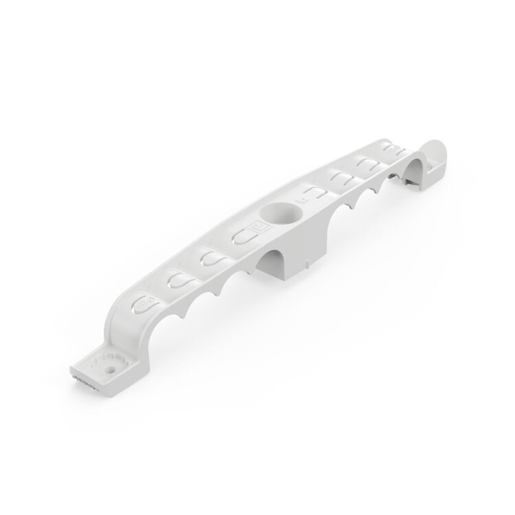 Держатель труб для прямого монтажа двусторонний на 8 мест d16 Промрукав - это специализированный крепеж, предназначенный для крепления гофрированных и гладких пластиковых труб диаметром 16 мм. Держатель труб разработан для прямого монтажа, что позволяет осуществлять крепление монтажными пистолетами по бетонным поверхностям, но возможен монтаж и классическим способом, используя дюбели и саморезы. С помощью двустороннего держателя труб можно одновременно смонтировать и закрепить до 8 труб. Данную продукцию можно использовать при прокладке линии внутри помещений или под навесом. При необходимости допускается фиксировать края держателя, в том числе монтажным пистолетом, для обеспечения максимально возможной надежности фиксации трубы. При необходимости монтажа большого количества труб с помощью держателя труб для прямого монтажа будет удобна упаковка держателей россыпью в гофроящике по 150 штук.