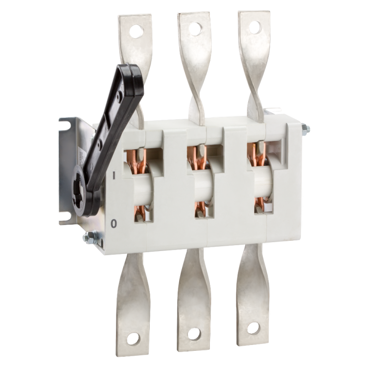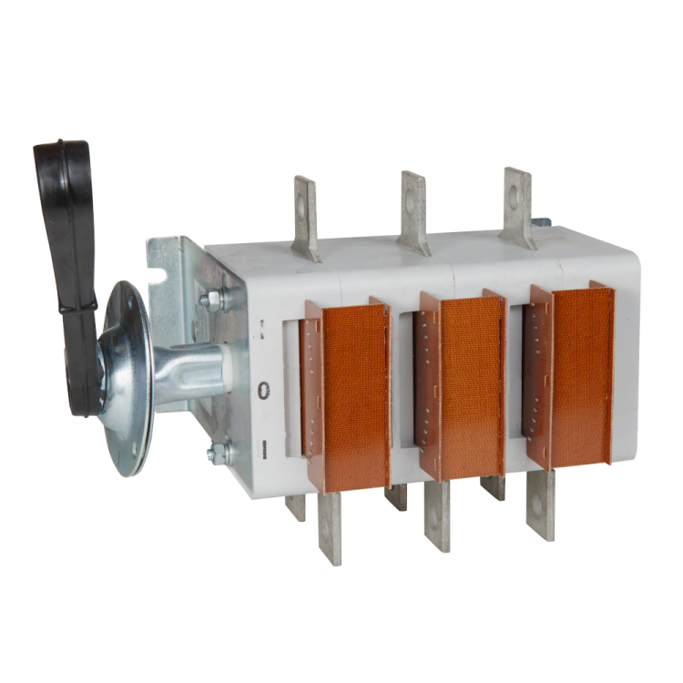 Выключатель-разъединитель 3 полюсный на номинальный ток 400 А, в котором установлена съемная рукоятка.