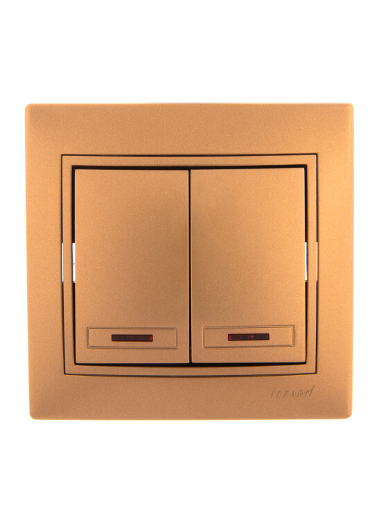 MIRA Выключатель 2-кл. с подсветкой металлик золото со вставкой LEZARD (10шт/120шт)