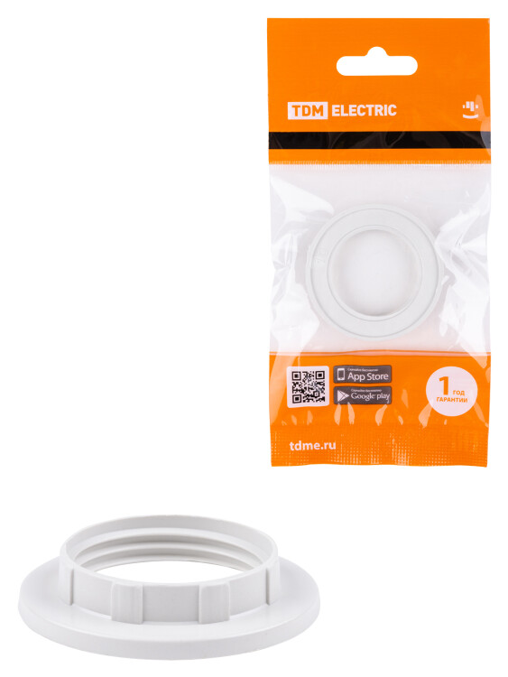 Кольцо для патрона Е14, термостойкий пластик, белый, TDM