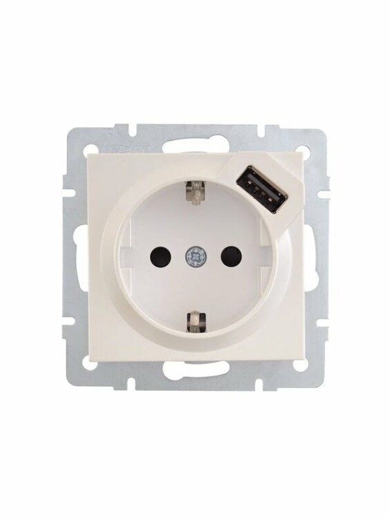 VESNA Розетка 1-ая с/з + USB разъём жемчужно-белый перламутр LEZARD (10шт/120шт)