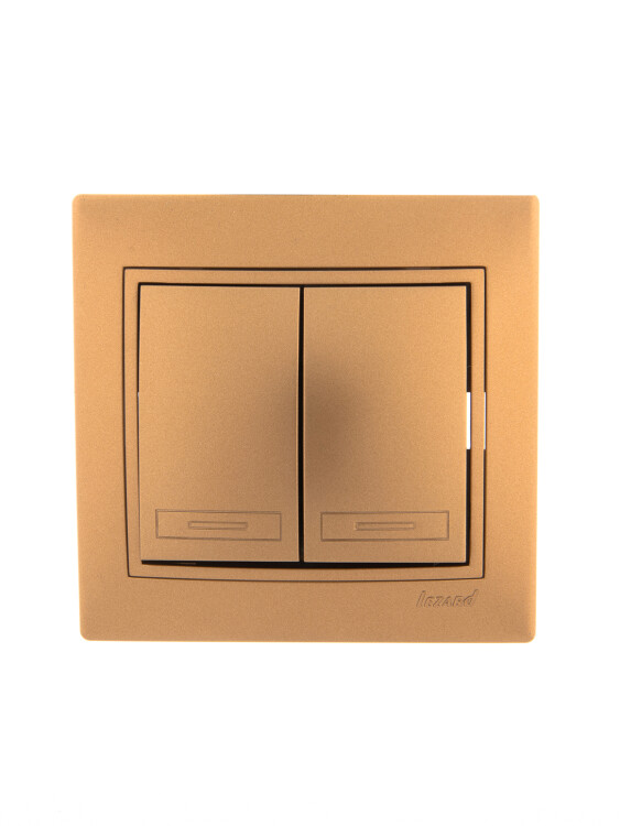MIRA Выключатель 2-кл. металлик золото со вставкой LEZARD (10шт/120шт)