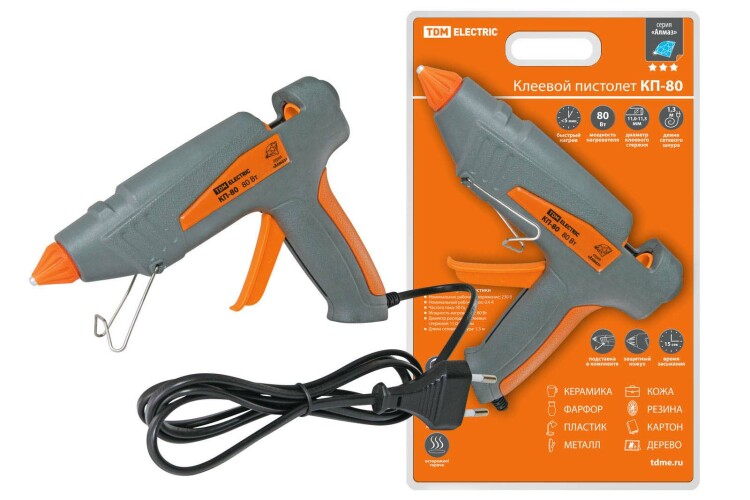Применение:В быту: мелкий ремонт, рукоделие и т.д.В промышленности: закрепление проводов, фиксация деталей и т.д.В строительстве: заделка швов, крепление декоративных элементов и т.д. Материалы:Нагревательный элемент выполнен из меди, алюминия и стали.АБС - пластикПреимущества:Удобная эргономичная рукоятка для комфортной длительной работыБыстрый разогревОптимальный состав клея для применения с широким спектром материалов.Высокая производительность по выходу клеяУдобный курок позволяет легко контролировать количество наносимого клея.Удобная подставка для защиты от повреждения поверхности нагревательным элементом. Назначение:Для быстрого и безопасного соединения различных материалов, повышения вибростойкости и устойчивости от окисления электрических соединений. 0: