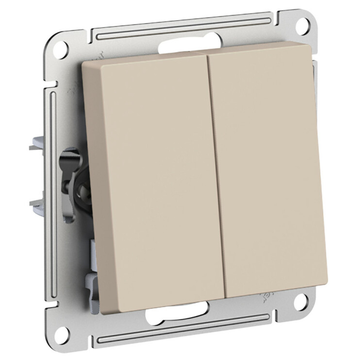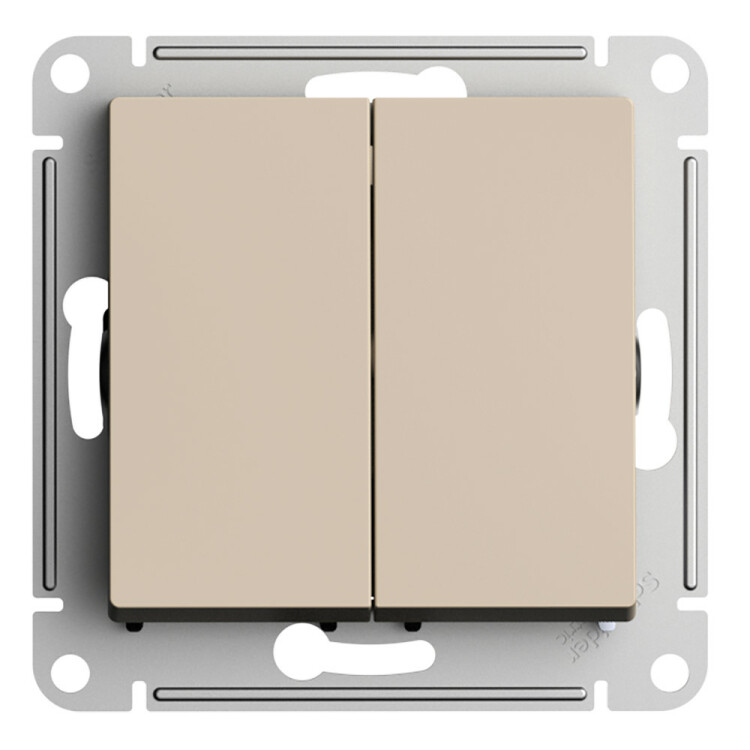 Механизм Systeme Electric (ранее Schneider Electric) серии AtlasDesign в цвете ПЕСОЧНЫЙ переключателя 2-клавишного подходит для сетей 250 В, на ток 10 А.