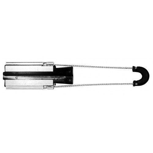 Анкерный зажим предназначен для крепления СИП на изолированную несущую нейтраль. Сечение нейтрали 50-70кв.мм. Рабочая нагрузка 500кГс. Масса=340гр.