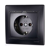 RAIN Розетка 1-ая с защитой от детей керамика черный графит матовый LEZARD (10шт/120шт)