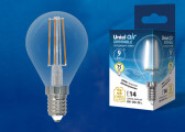 Лампа светодиодная прозрачная шар G45 9 Вт 3000K E27 GLA01TR Uniel диммируемая