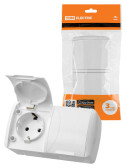 Розетка двойная 2П+3 открытой установки IP54 16А с крышкой белая "Селигер"