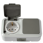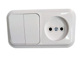 UNIVersal "Аллегро" Розетка Бел + роз. Блок.с/з, з/ш, IP-54, с крышкой