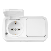 ПРАЛЕСКА Блок выключатель 1-кл.+розетка с/з с крышкой горизонтальный белый БелТИЗ