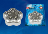 DTL-359 Цветок-B/Silver/5LED/3АAA Cветильник-ночник пушлайт, питание от 3-х батареек AAA (в комплект не входят). Серебристый