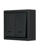 LETO Выключатель двойной с подсветкой чёрный бархат (10шт/120шт)