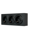 LETO Розетка тройная с/з закрытый корпус ПБТ чёрный бархат (7шт/84шт)